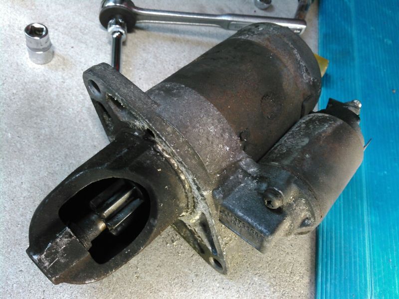 ![]() | 外してみてセル本体のターミナルにバッテリーを直接つないでみましたが、うんともすんとも回る気配は一切なし...ハイご臨終ですね。 電装屋さんに持ち込みオーバーホールするかリビルト品を探すかですね。 |