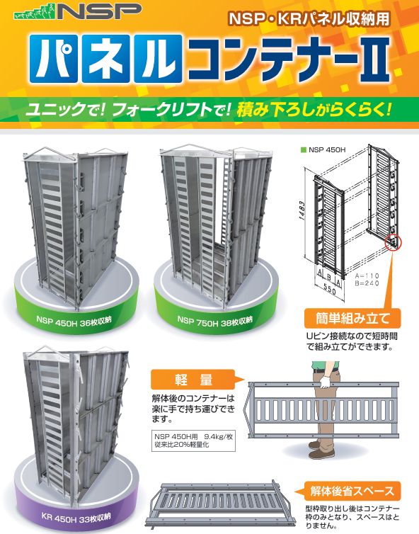 ●従来品より軽量化したので、持ち運びが更に楽になりました。(NSP 450H用 9.4kg/枚 従来比20%軽量化)