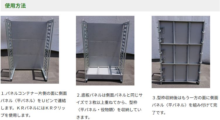●パネルコンテナー側面には型枠を使用し、短時間で組みバラシができます。