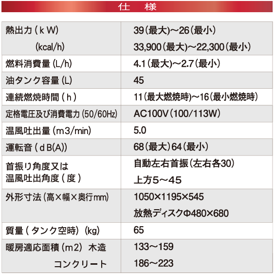 ●主な使用用途:工場・倉庫・体育館・イベント会場・スポーツ会場・その他、屋内外の暖房