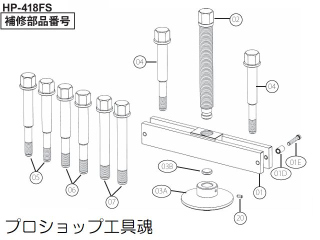 HASCO HP-418FS リアホイールハブプーラー用補修部品 [HP-418-01〜HP-418-17]