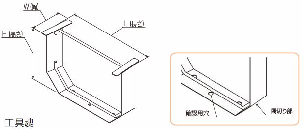 | 品番 | 品名 H×L×W(mm) | 入数(最低出荷数) | 8325011 | 内部通風口枠 400×600×120 | 1 |