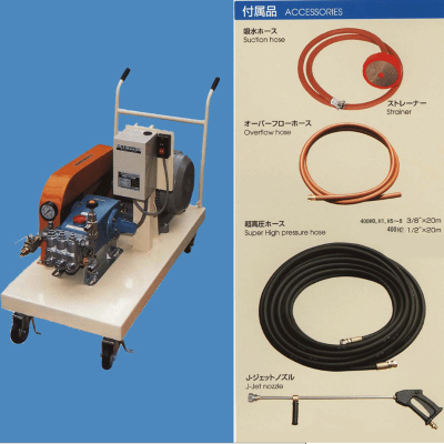 ●付属品:給水ホース、ストレーナー、オーバーフローホース、3/8"×20m、J-ジェットノズル