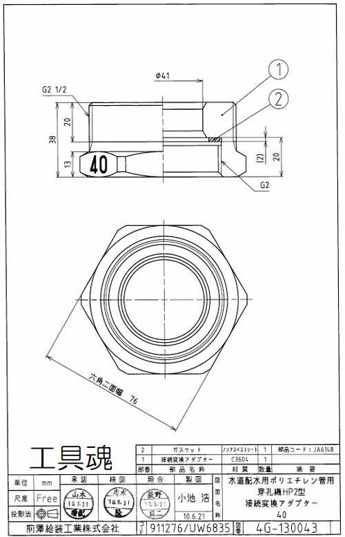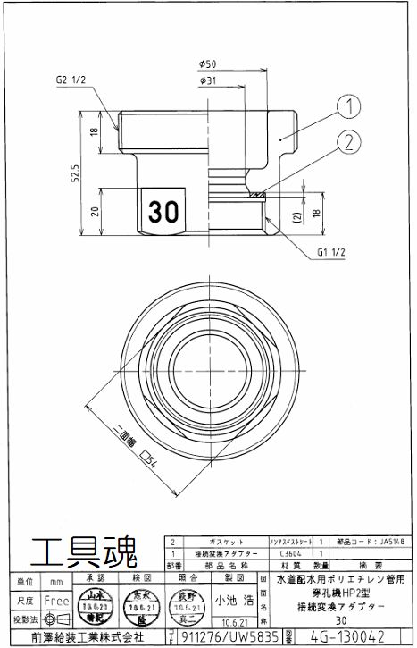 前澤給装 水道配水用ポリエチレン管用簡易穿孔機HP2型用アダプター [911276-30/911276-40]