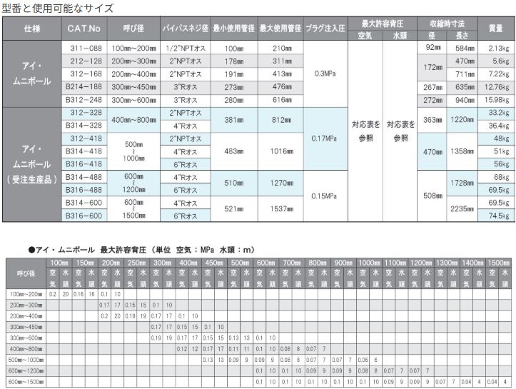 ●空気で膨らませ管内で密着させる、バイパス付の止水プラグです。