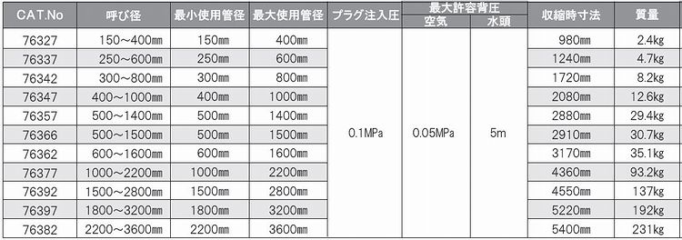 ●規定圧(0.1MP)の半分になっても管からプラグは飛び出しません(止水している汚水は流れます)