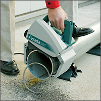 ●小型ながら大口径のパイプを、手軽に・速く・直角切断。
