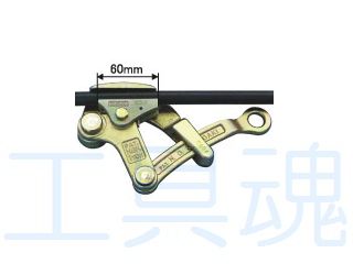 | 品番 | 23-5 | 最大使用張力 | ※: 10kN(1000kgf) | 掴線範囲 | φ4mm〜φ22mm | 裸銅線 | ※: 5mm〜200sq | 被覆銅線 | ※: 14sq〜OC80sq | 被覆アルミ線 | ※: OW25sq〜OC120sq | 重量 | 1.1kg |