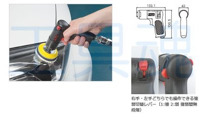 ※エアカプラ、エアツール用オイル、パッド(φ75mm)、スポンジ(φ80mm)、クロス(φ80mm)、専用レンチ各1コ付き。