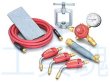 アセチレン用調整器 ねじ付(PZ3867955 )、アセチレン用ホース 3.6m(PZ386190)、ガット、防炎シート、キャリングケース